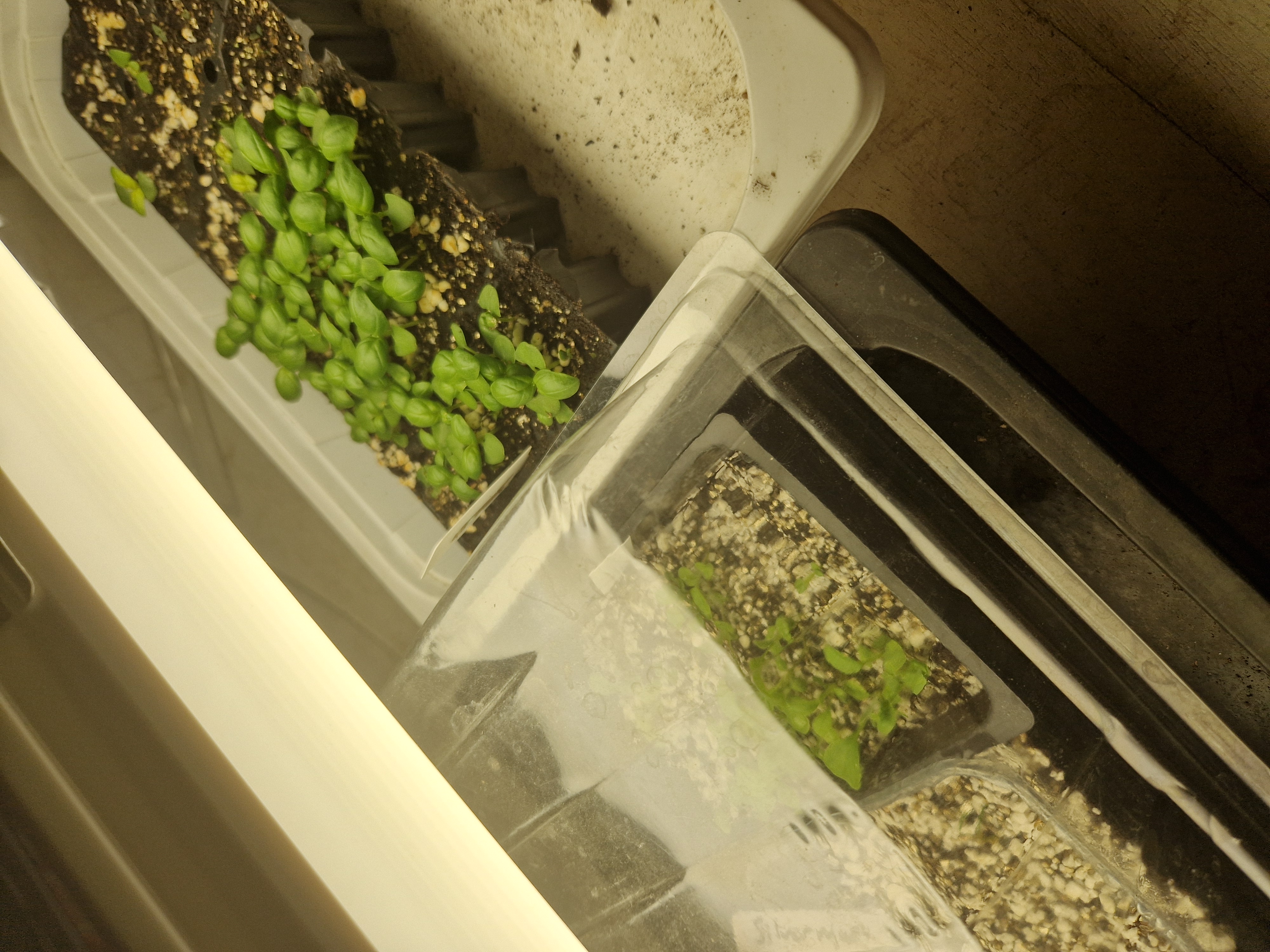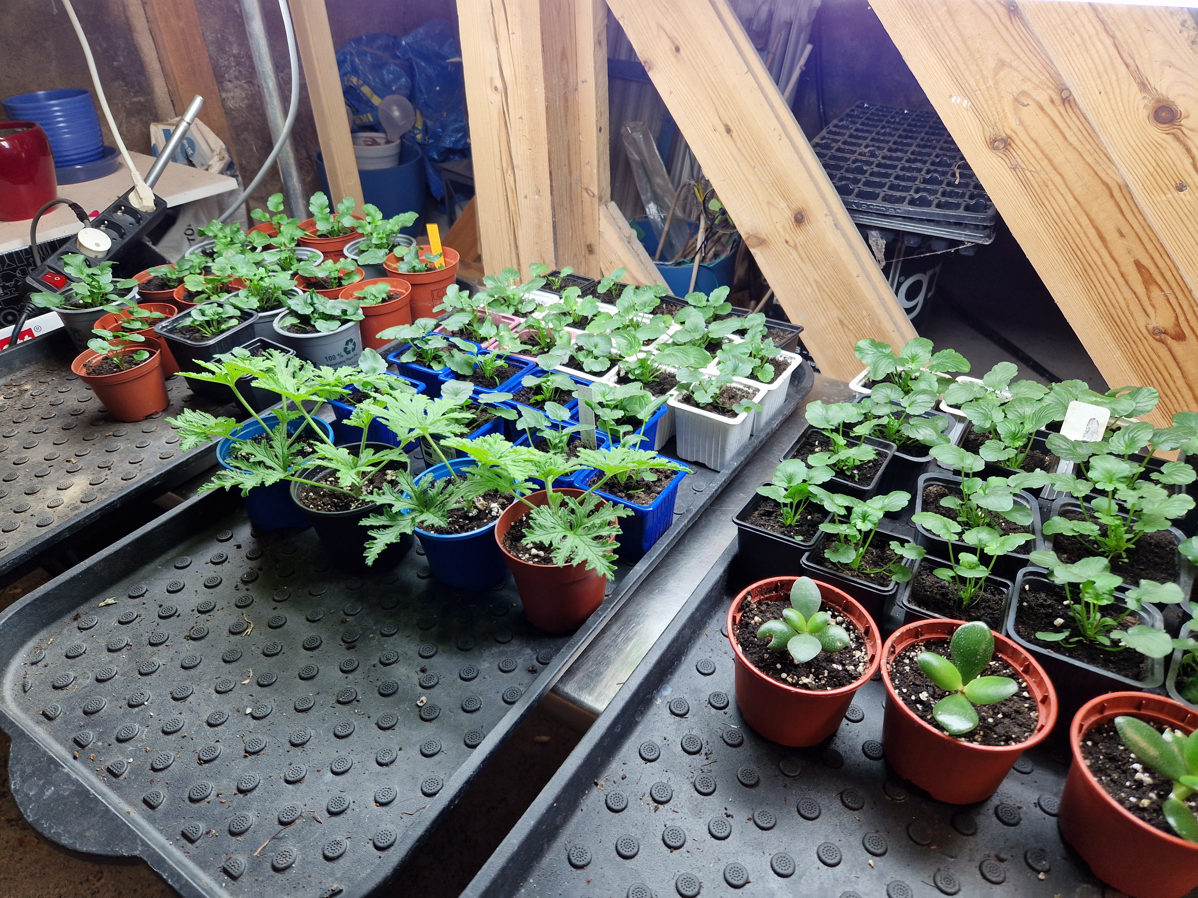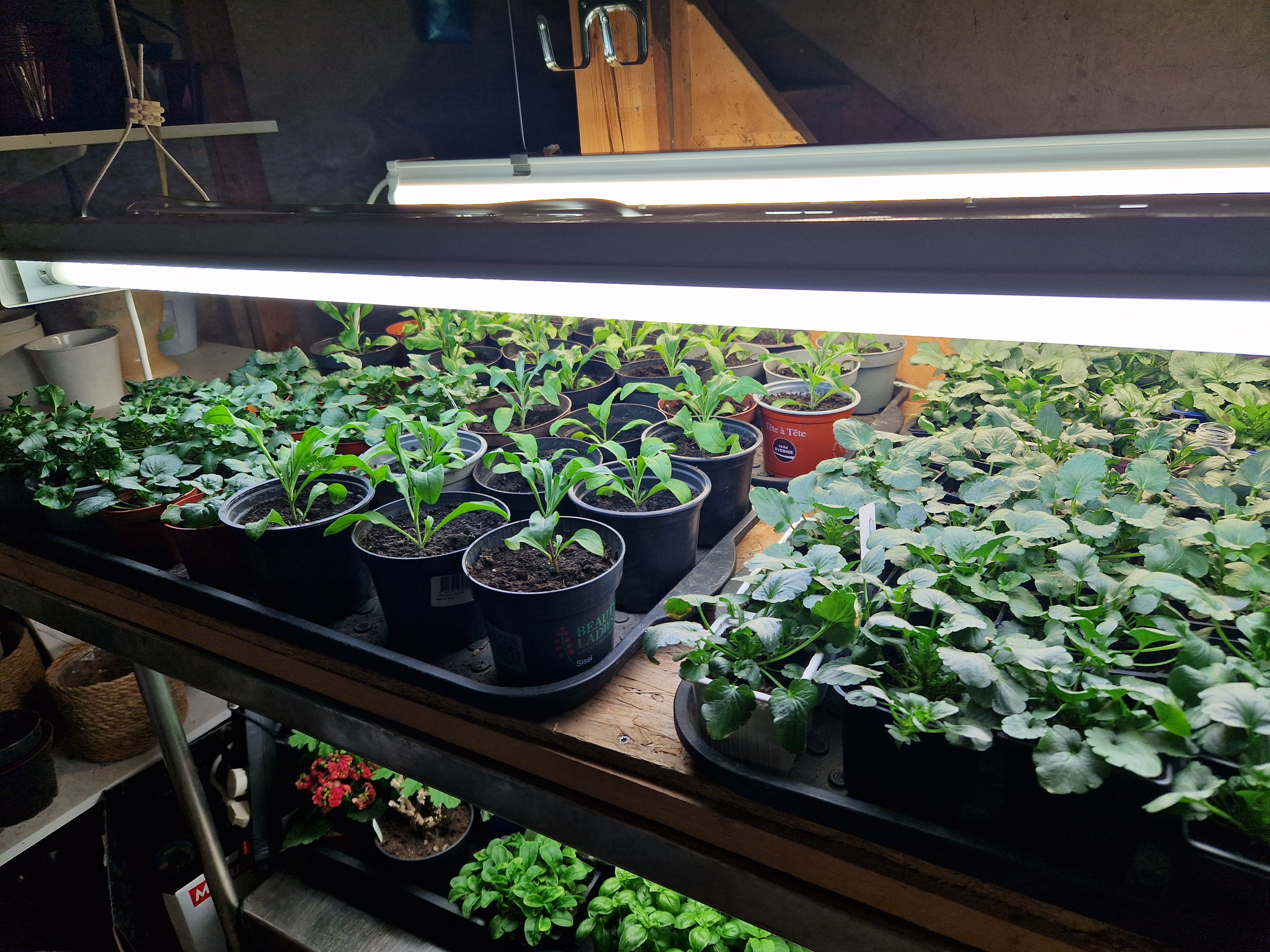 De växer på sig fint mina penséer som jag sådde i oktober månad. Hoppas att de sätter knopp i lagom tid till våren också. De står i ett källarutrymme under lysrör i mellan 10-14 graders värme tillsammans med lite andra kruväxtsticklingar jag satte för någon månad sedan.