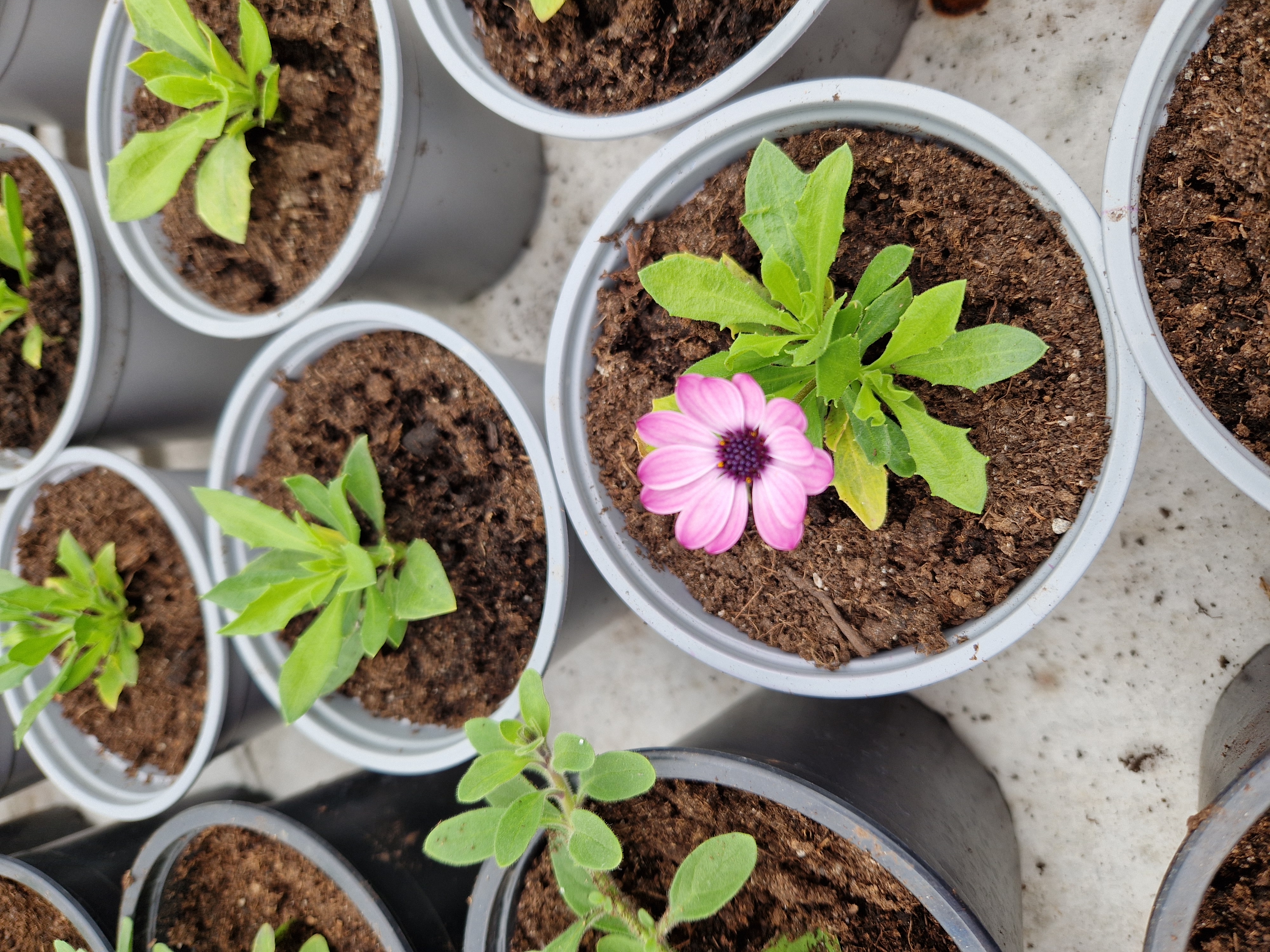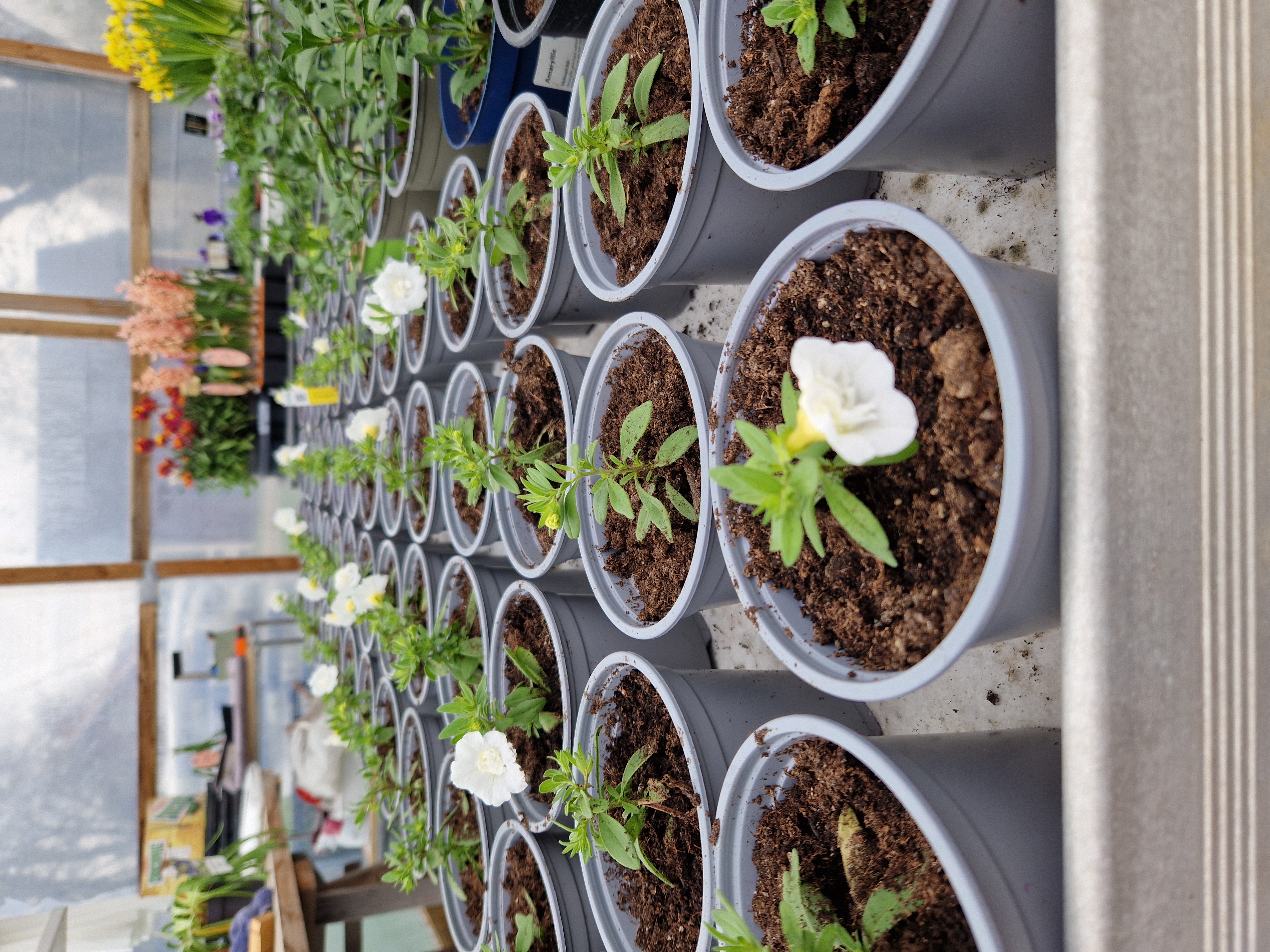 Nu börjar det blomma mer och mer i växthuset även om plantorna är små. Fortsätter att skola om egensådda plantor när tid ges, finns massor att göra nu.